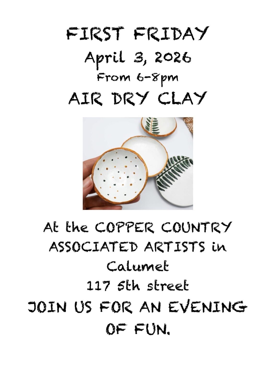 The CCAA Monthly meeting will be held on APRIL 16, 10:00 AM at the Gallery 117 5th Street, Calumet.