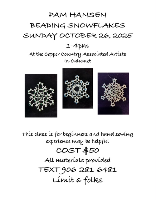 Pam Hansen is looking forward a few weeks and offering her Beading Snowflakes class. Take a look at the details and contact Pam to save your spot in this class.